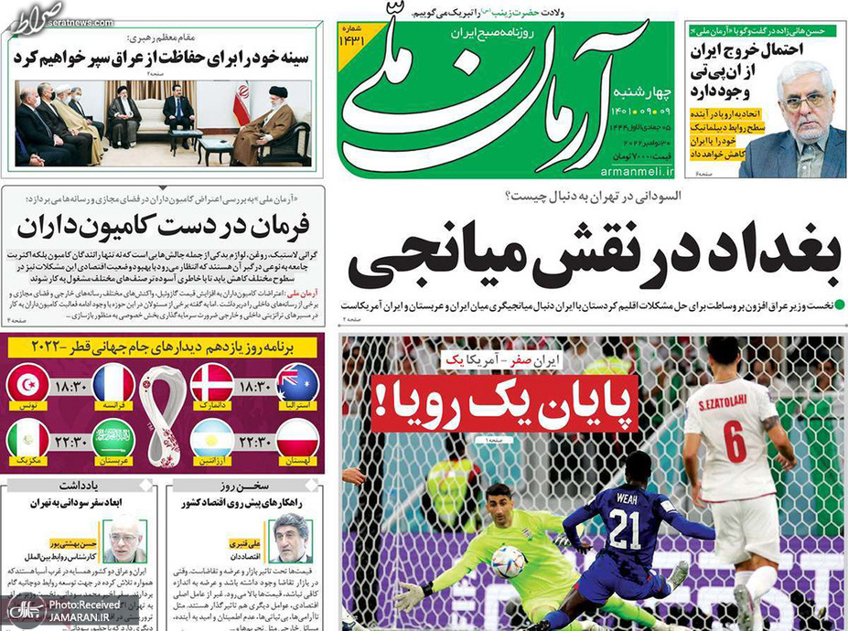 تصاویر/ پیشخوان روزنامههای چهارشنبه ۹ آذر
