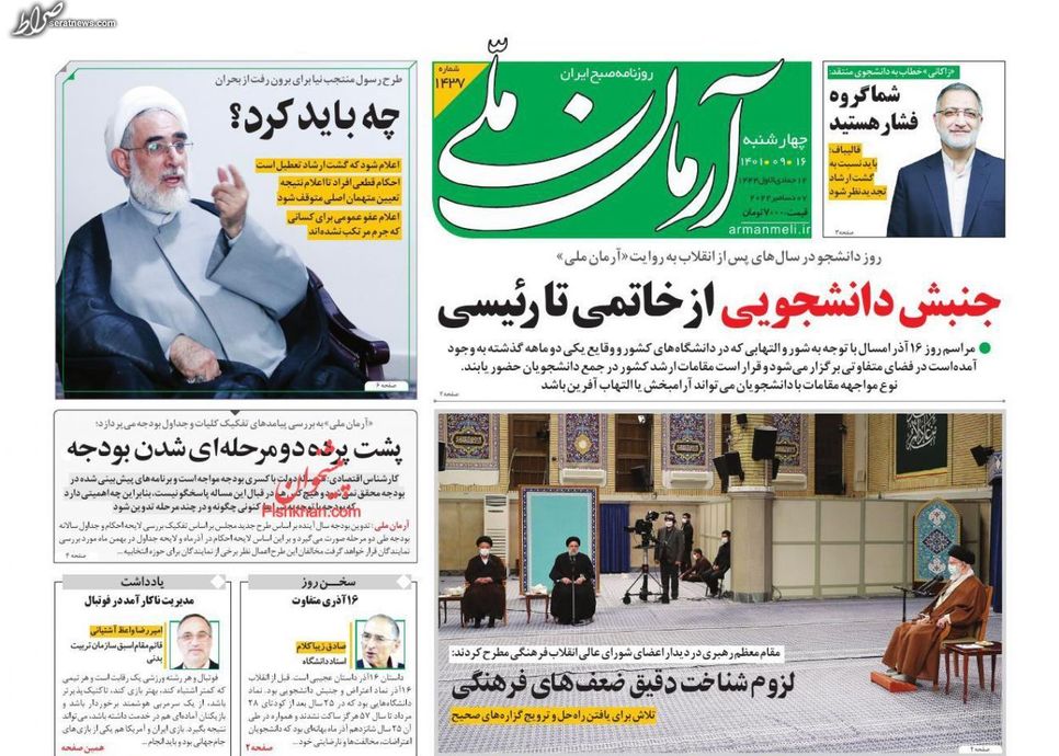 تصاویر/ پیشخوان روزنامههای چهارشنبه ۱۶ آذر