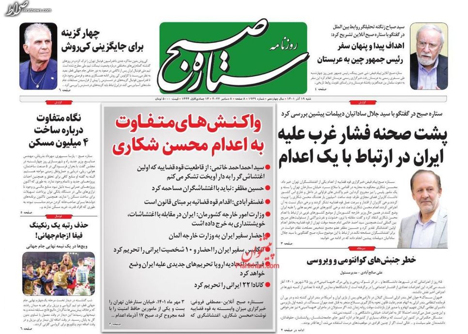 تصاویر/ پیشخوان روزنامههای شنبه ۱۹ آذر