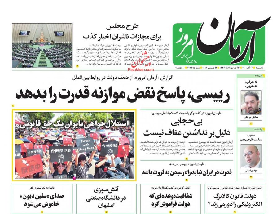 تصاویر/ پیشخوان روزنامههای یکشنبه ۲۰ آذر