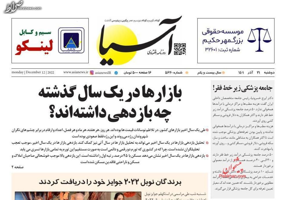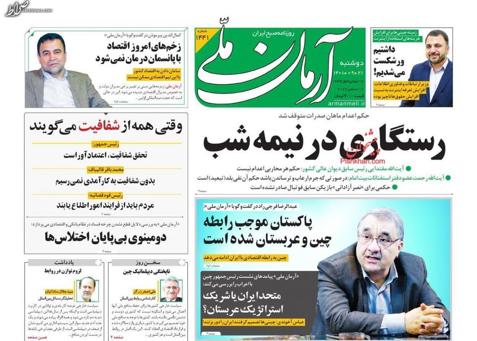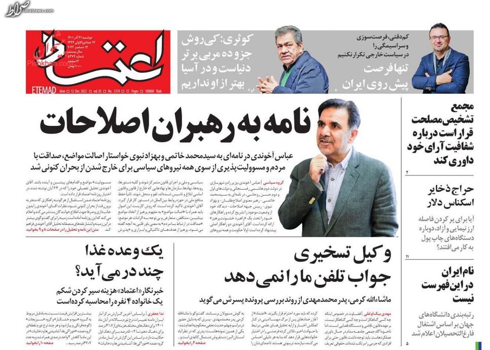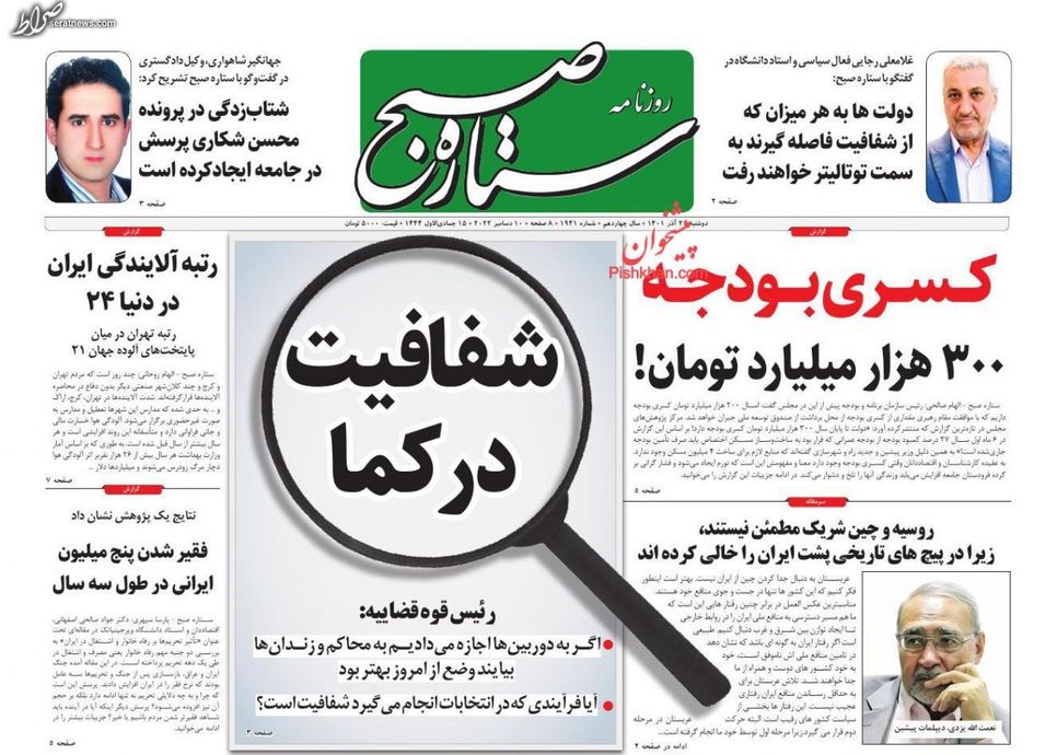 تصاویر/ پیشخوان روزنامههای یکشنبه ۲۰ آذر