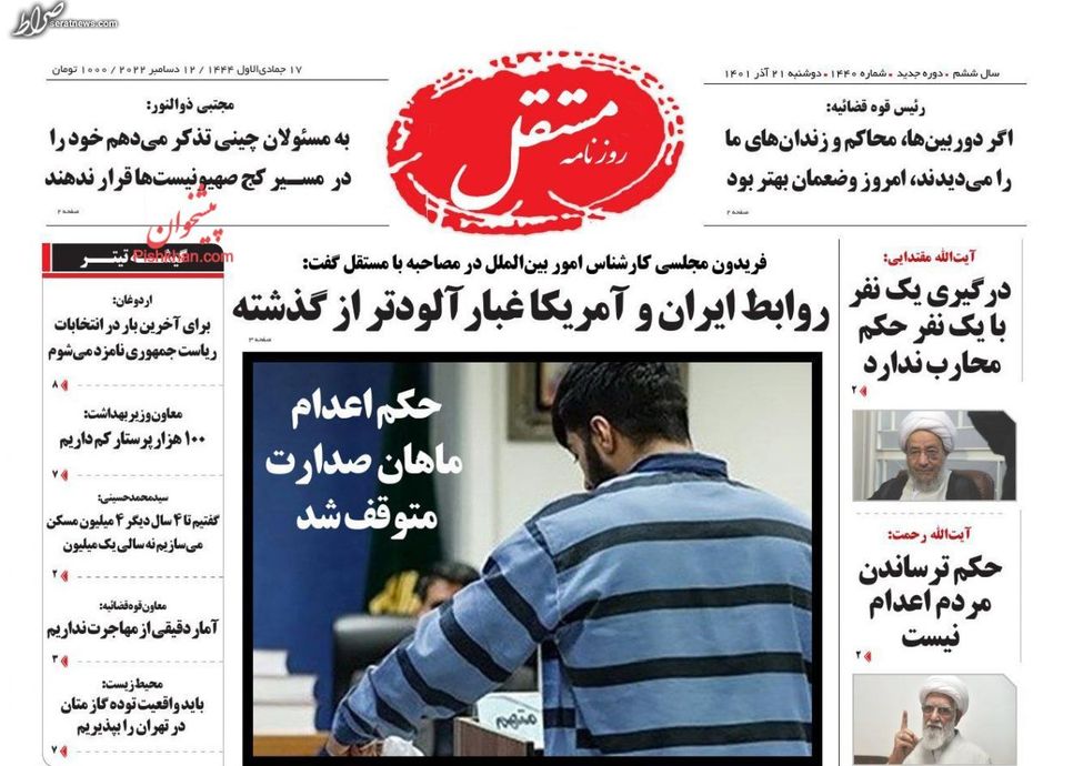 تصاویر/ پیشخوان روزنامههای سهشنبه ۲۲ آذر