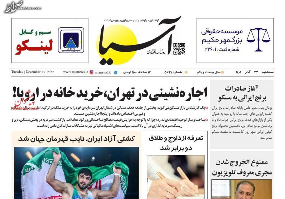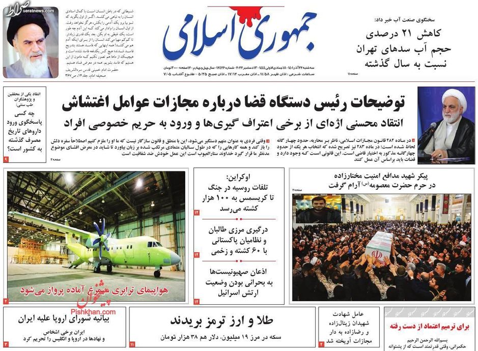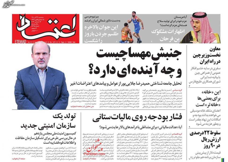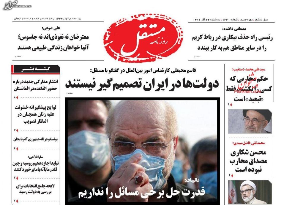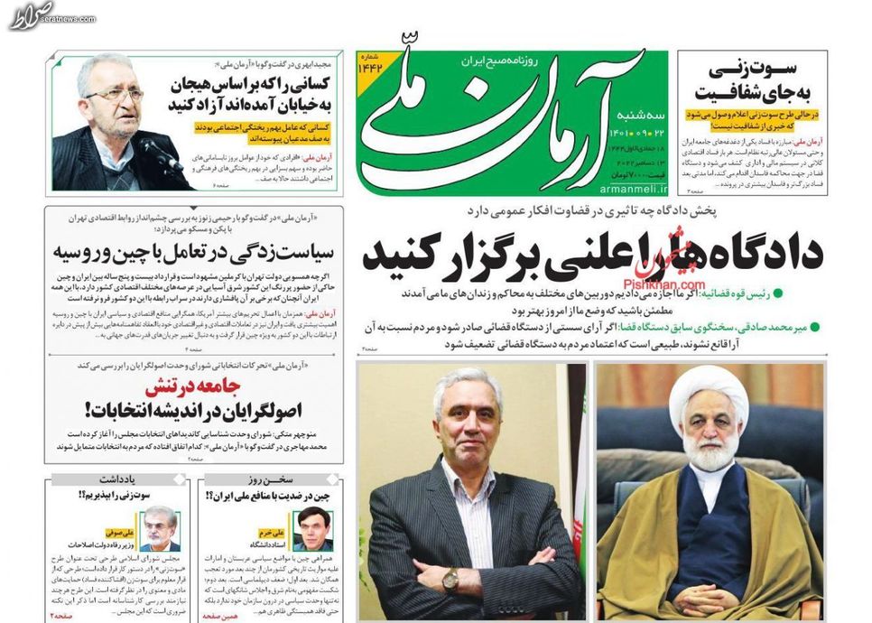 تصاویر/ پیشخوان روزنامههای سهشنبه ۲۲ آذر