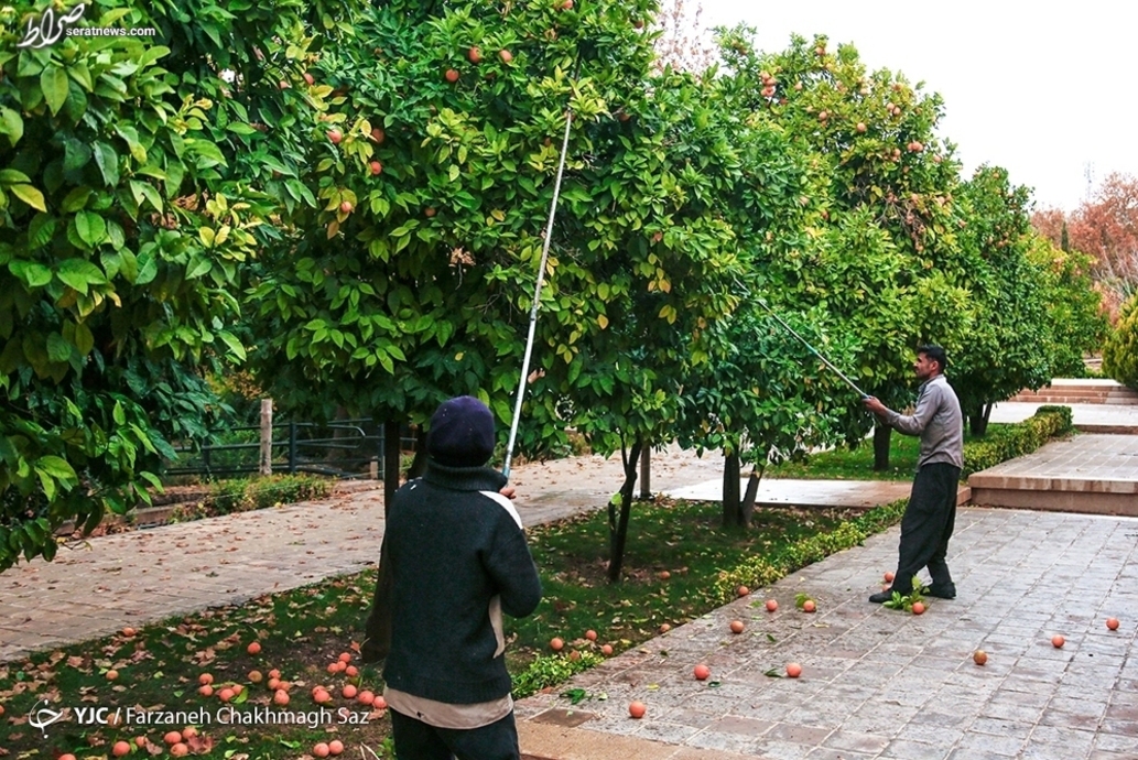 چیدن میوه خوش عطر نارنج در باغ ارم شیراز که یکی از زیباترین و معروفترین باغهای ایران و این شهر تاریخی است، طبق روال هر ساله در آخر فصل پاییز، انجام میشود. درختان نارنج و عطر میوه نارنج در این باغ زیبا منظره ایی فوق العاده و تماشایی پدید میآورد که نظیرش را در هیچ کجای دنیا، نمیتوان یافت. باغ ارم شیراز، بیشتر زیبایی و چشم نوازی خود را مدیون درختان بهار نارنج باغ و طبیعت بی نظیر آن است که به ثبت جهانی یونسکو، رسیده است.