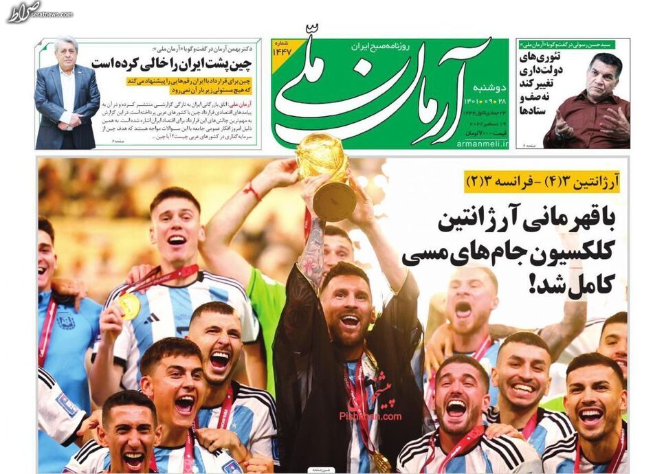 تصاویر/ پیشخوان روزنامههای دوشنبه ۲۸ آذر