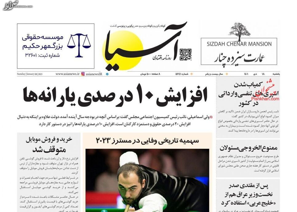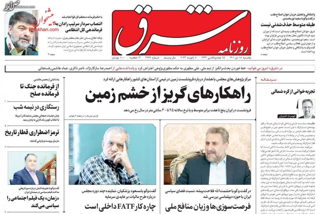 تصاویر/ پیشخوان روزنامههای یکشنبه ۱۸ دی