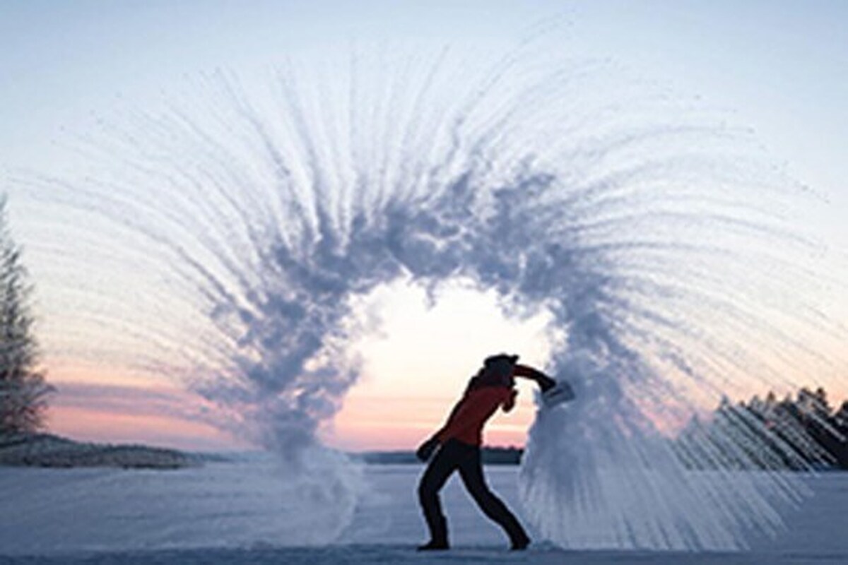فیلم/ تبدیل آب جوش به بخار در هوای سرد