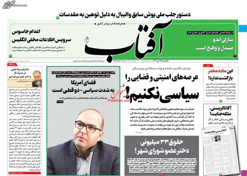 تصاویر/ پیشخوان روزنامههای یکشنبه ۲۵ دی