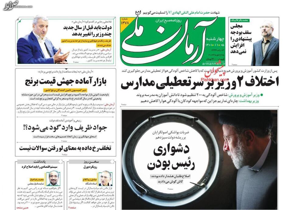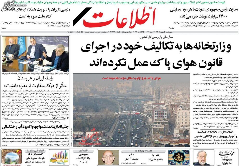 تصاویر/ پیشخوان روزنامه‌های چهارشنبه ۵ بهمن
