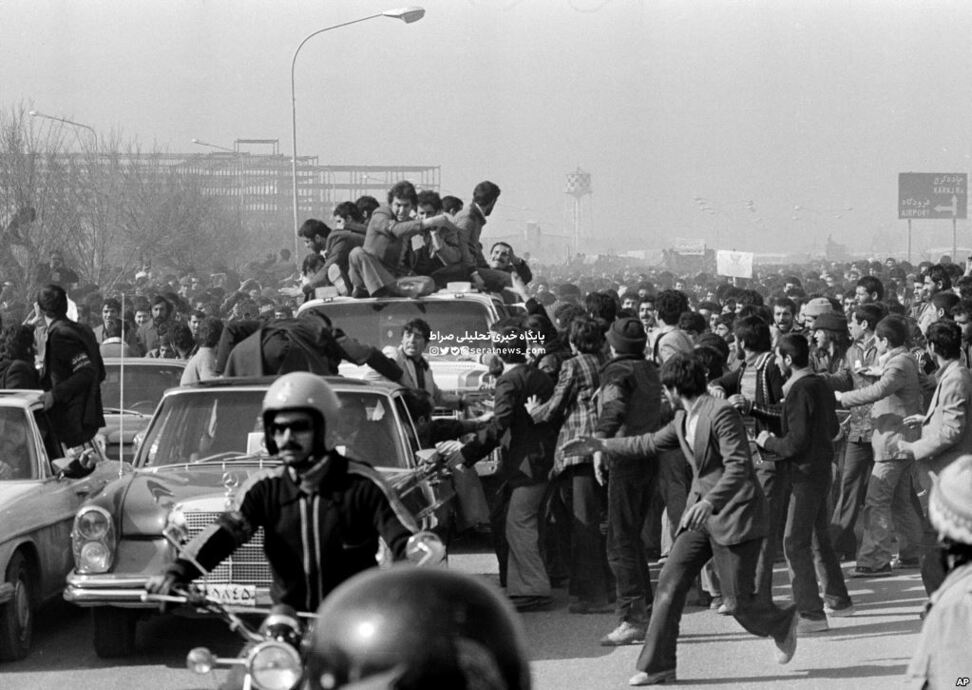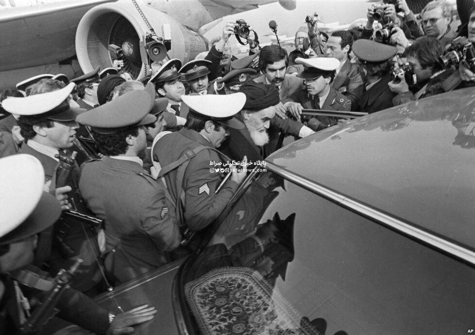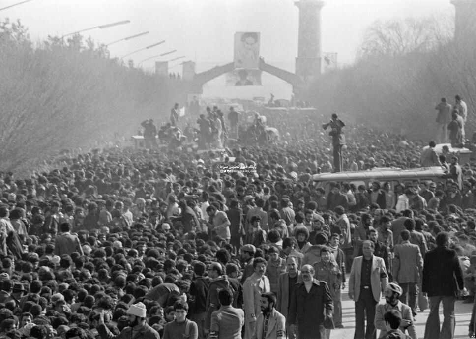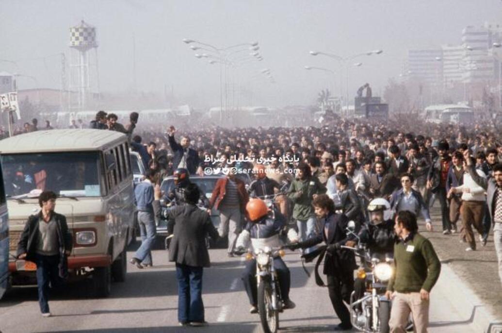 به محض اینکه [آیتالله]خمینی با عبای سیاهرنگ خود فرودگاه را ترک کرد، میلیونها نفر از هواداران او نیز به دنبال او به راه افتادند. چندین دستگاه مینیبوس پر از خبرنگاران خارجی نیز آنها را همراهی میکردند.