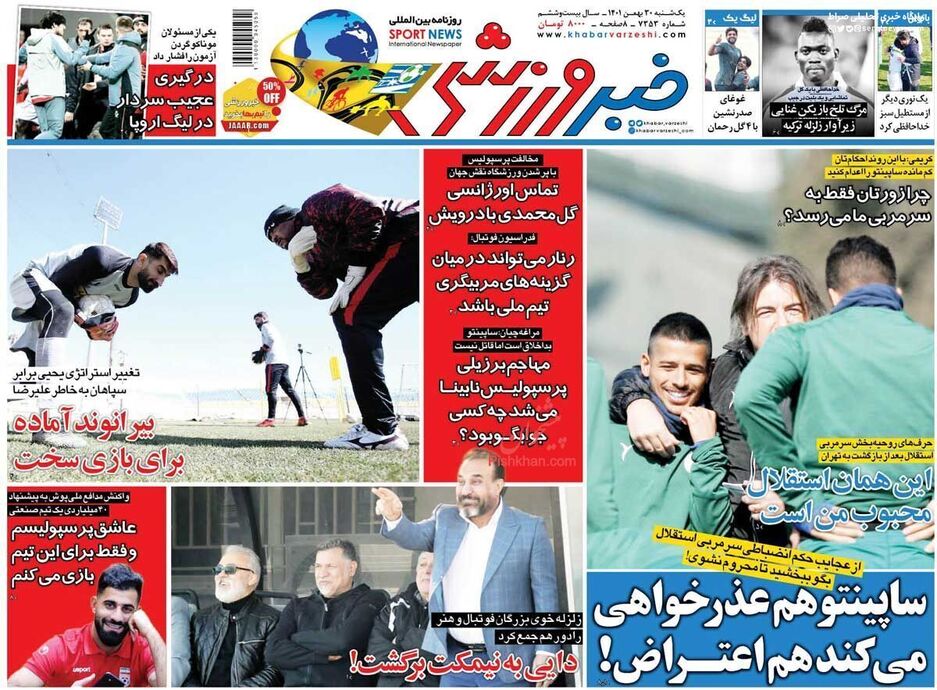 تصاویر/ پیشخوان روزنامههای ورزشی یکشنبه ۳۰ بهمن