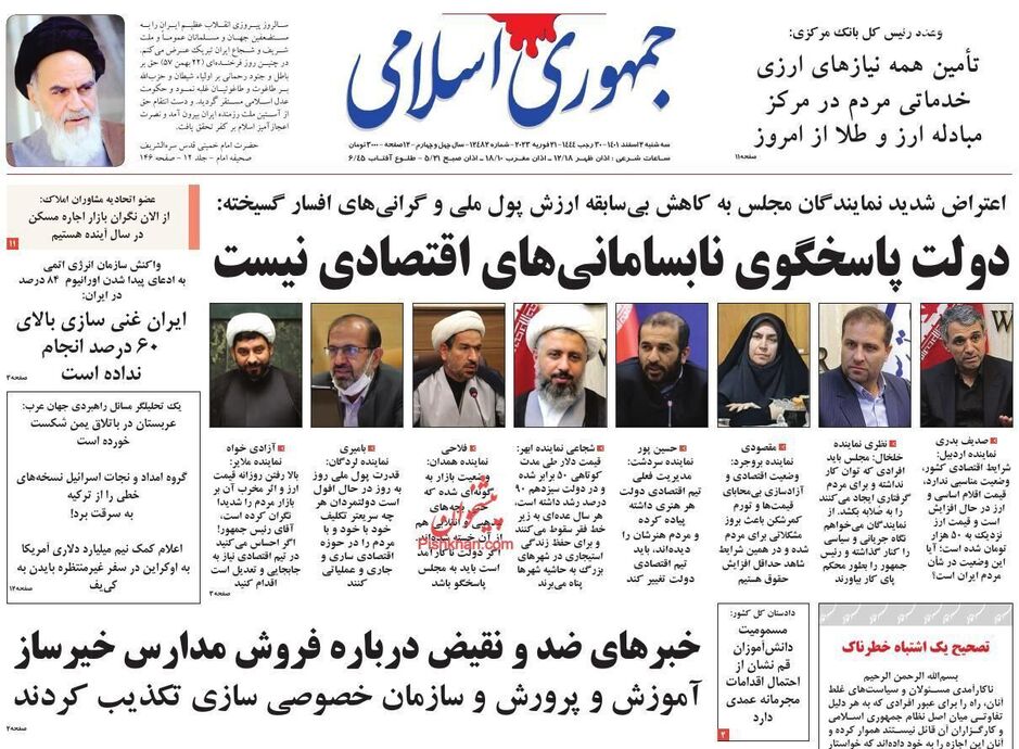 تصاویر/ پیشخوان روزنامههای سه شنبه ۲ اسفند