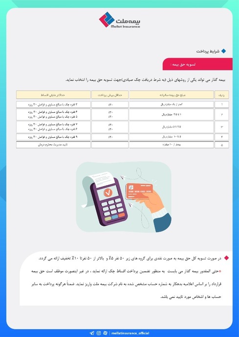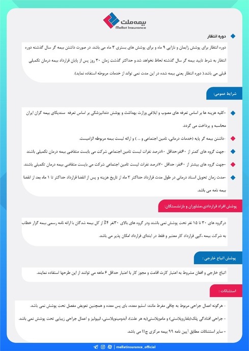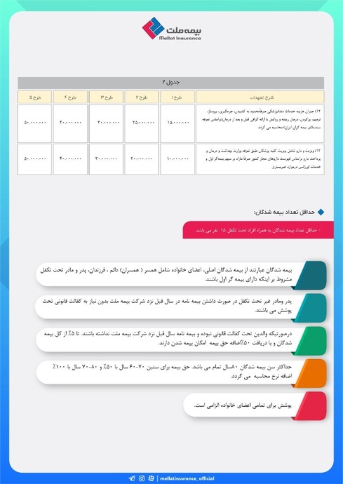 همچنین مشتریان میتوانند برای کسب اطلاعات بیشتر از طریق مراجعه به آدرس: https://melat.ir/app/products/۱۵۹۱۲/ashkhas از جزئیات این طرح مطلع شوند.