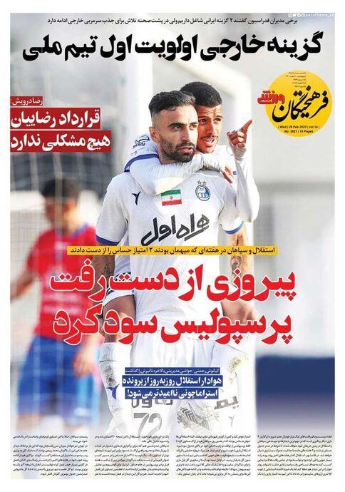 تصاویر/ پیشخوان روزنامههای ورزشی سه شنبه ۹ اسفند