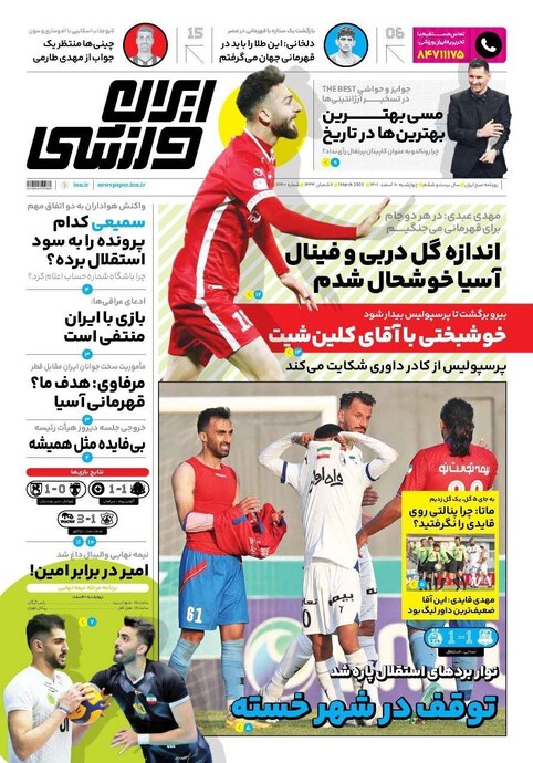تصاویر/ پیشخوان روزنامههای ورزشی دوشنبه ۸ اسفند