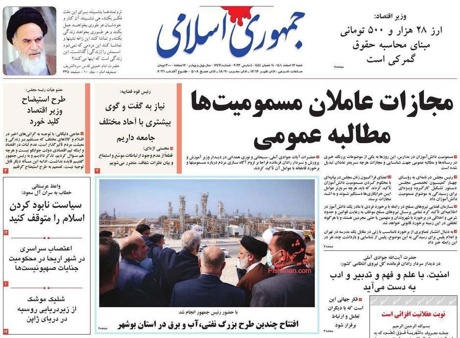 تصاویر/ پیشخوان روزنامههای شنبه ۱۳ اسفند