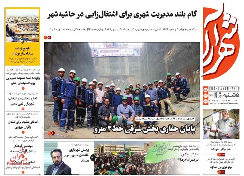 تصاویر/ پیشخوان روزنامههای شنبه ۲۰ اسفند