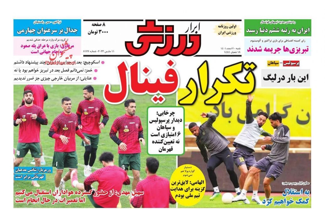 تصاویر/ پیشخوان روزنامه‌های ورزشی شنبه ۲۰ اسفند
