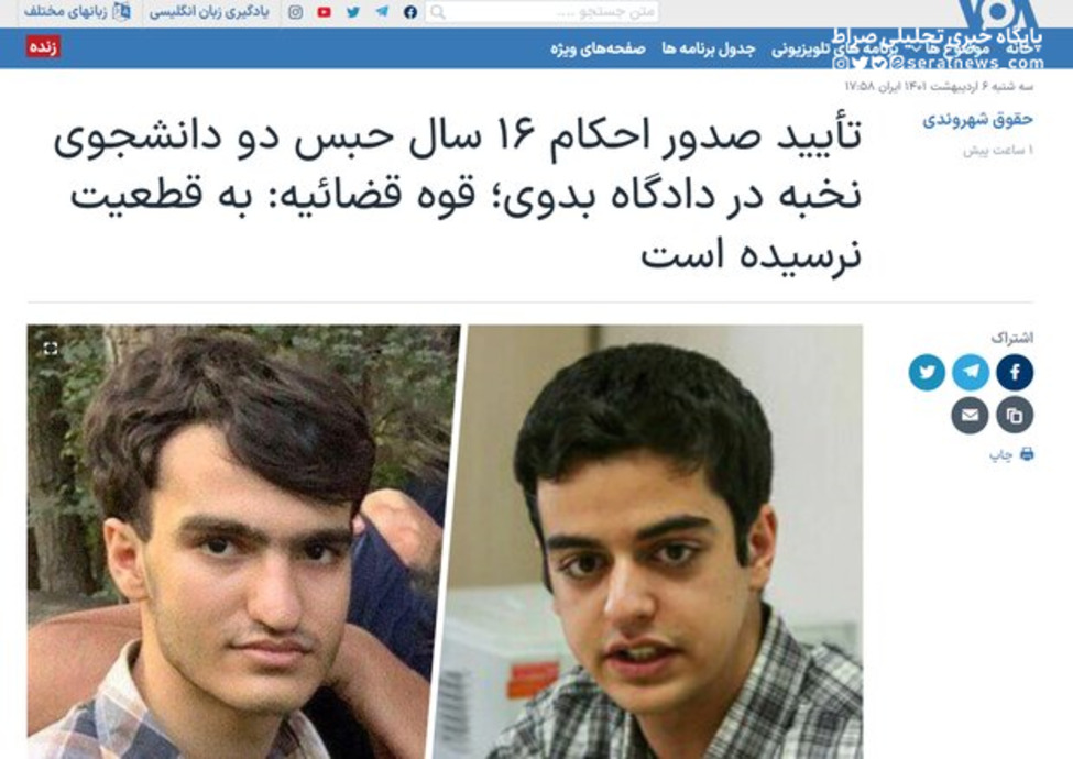 سخنگوی دستگاه قضا نیز در نشست خبری خود و در جمع خبرنگاران تاکید کرده بود که این ۲ نفر به اتهام تخریب، ایجاد حریق و خرابکاری در تأسیسات هر کدام به ۱۰ سال حبس، به اتهام اجتماع و تبانی علیه امنیت کشور و همکاری با گروهکهای معاند نظام به ۵ سال و فعالیت تبلیغی علیه نظام به یک سال حبس محکوم شدند. مجازات اشد یعنی ۱۰ سال در مورد آنها اجرایی خواهد شد؛ البته حکم هنوز قطعی نشده است.