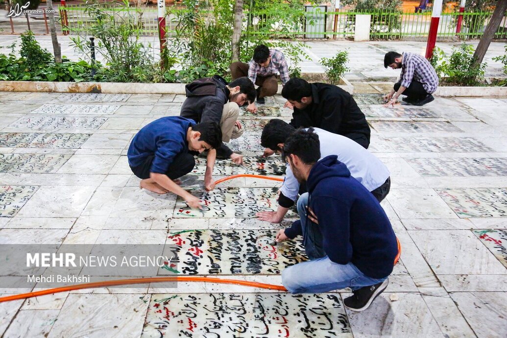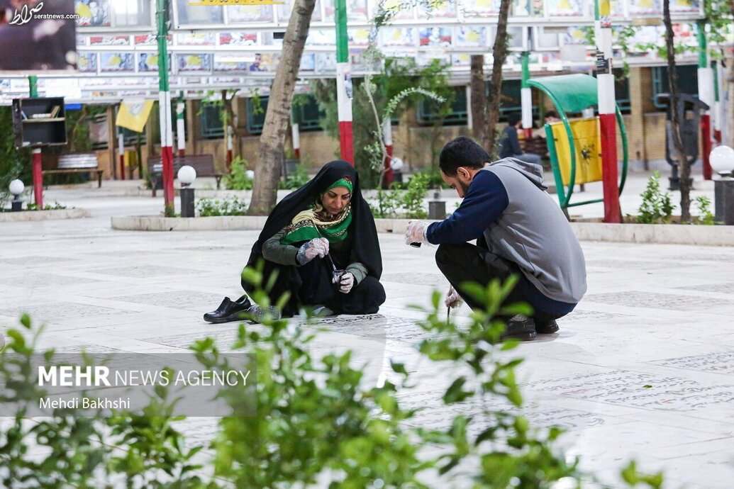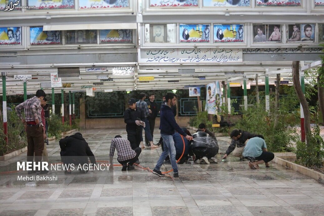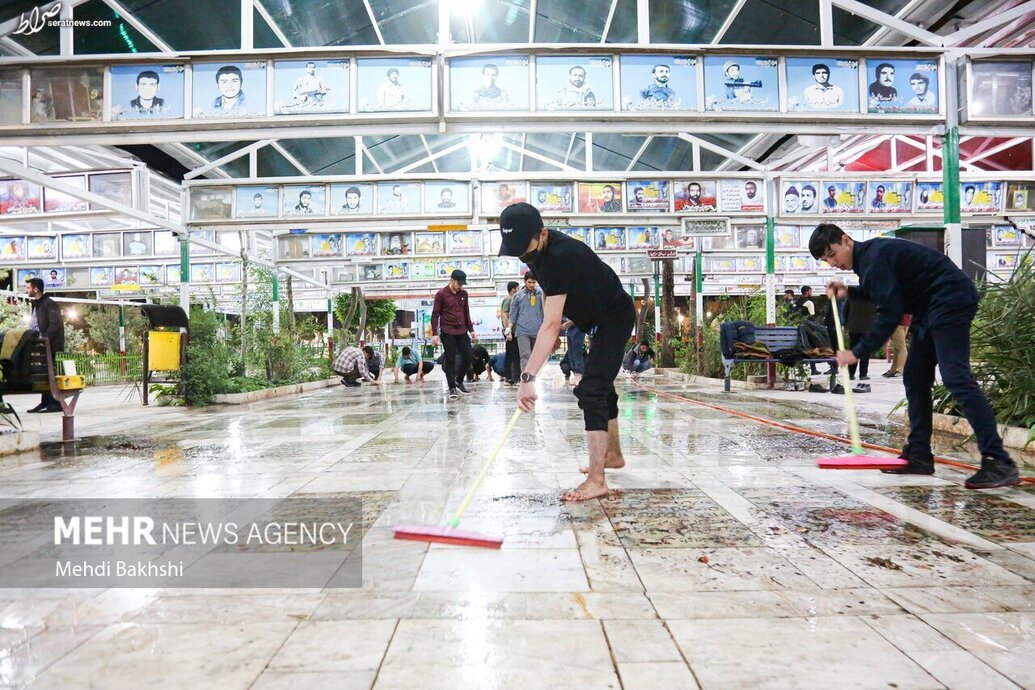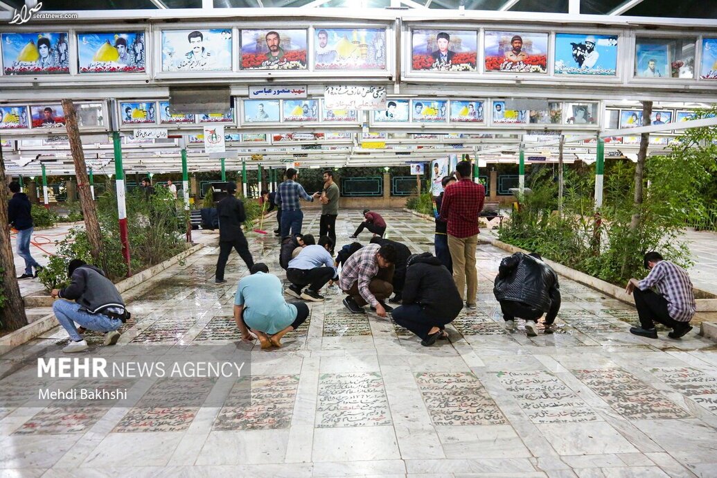 تصاویر / شستشو و رنگ آمیزی مجدد قبور شهدای قم