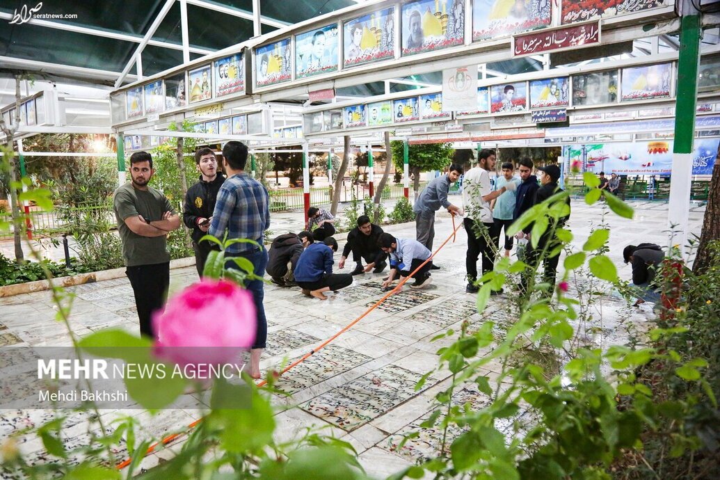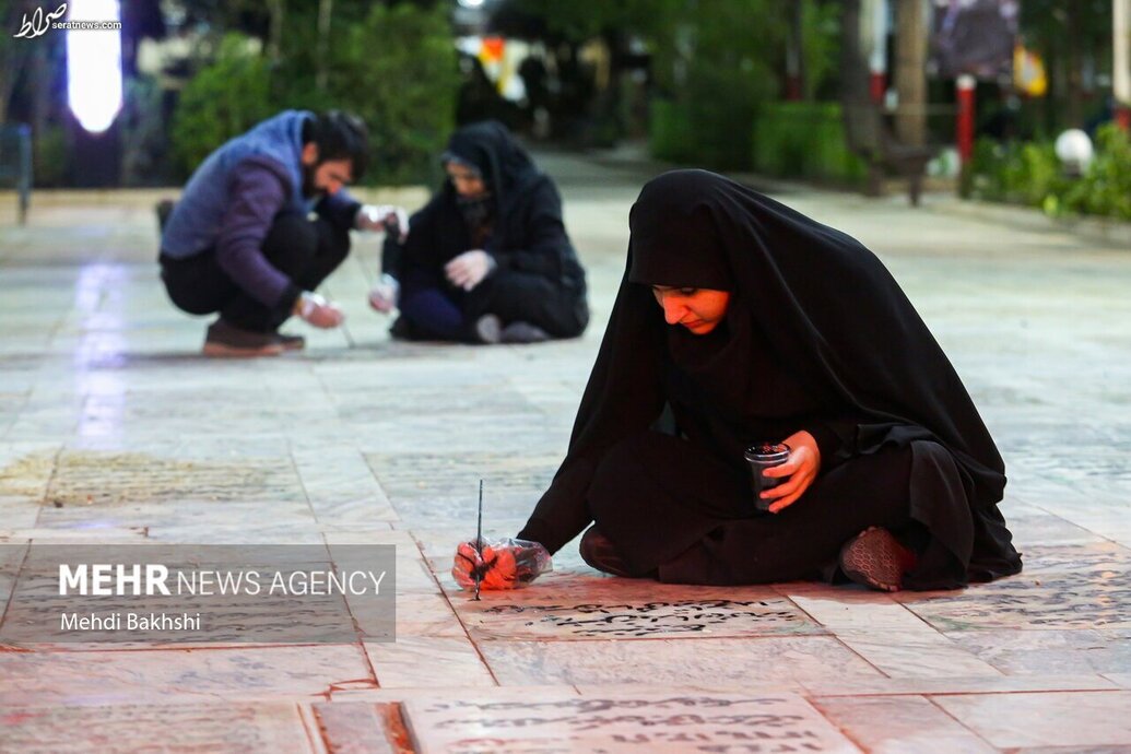 اقشار مختلف مردم شهر قم در شبهای ماه مبارک رمضان در گلزار شهدای علی بن جعفر (ع) که دومین گلزار ملی کشور به شمار میرود حضور یافته و قبور شهدا را رنگ آمیزی میکنند.