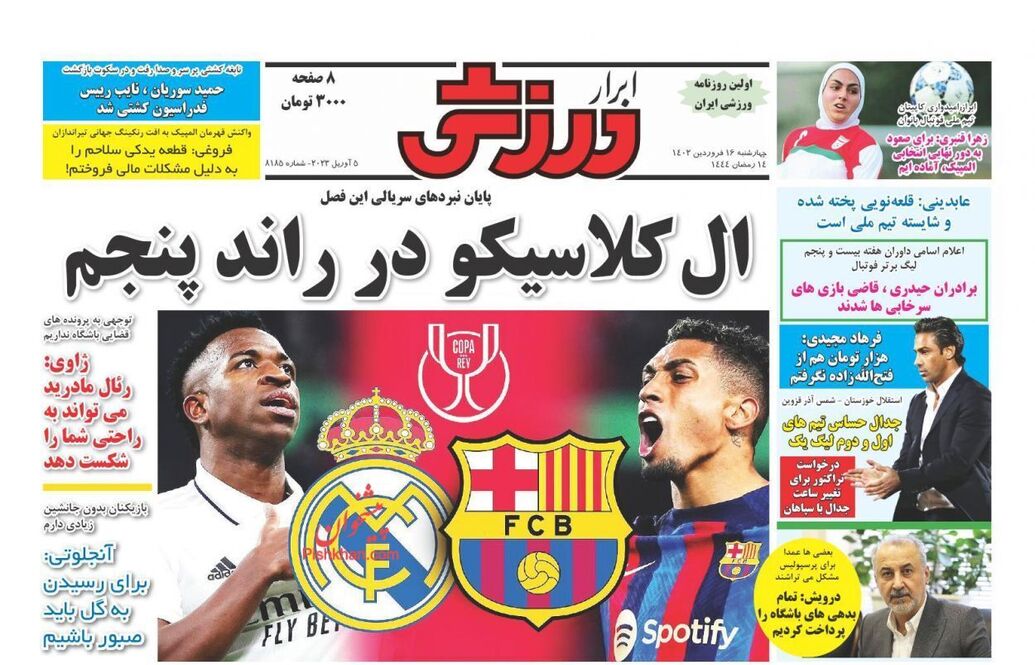تصاویر/ پیشخوان روزنامههای ورزشی چهارشنبه ۱۶ فروردین ۱۴۰۲