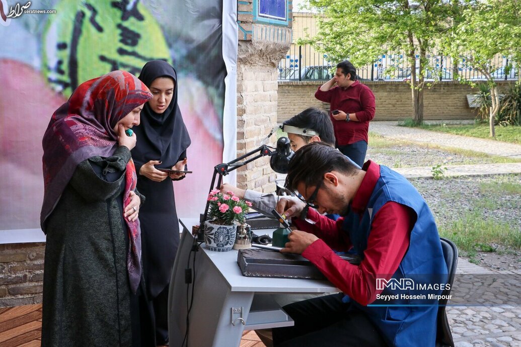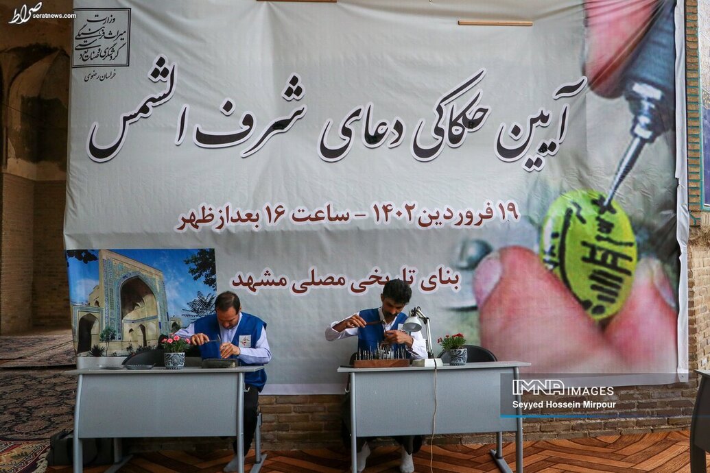 مراسم حکاکی دعای شرف الشمس با حضور ۱۴ هنرمند حکاک نگین خراسانی در مجموعه تاریخی فرهنگی مصلی مشهد برگزار شد.