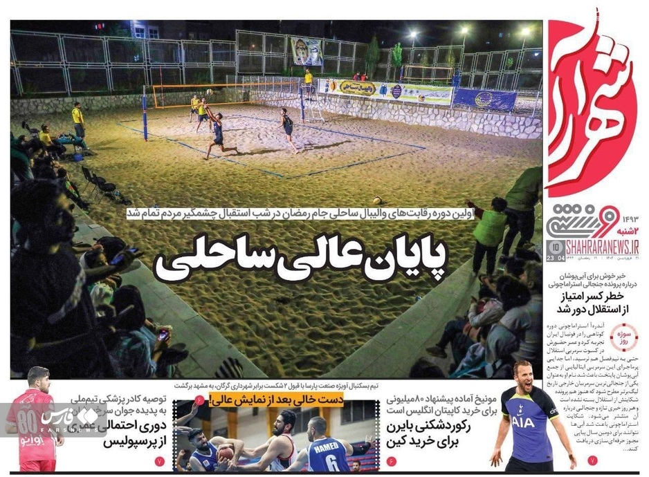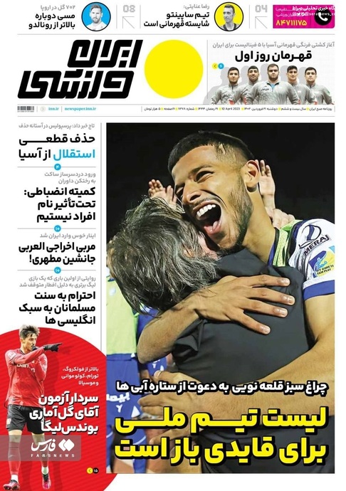 تصاویر/ پیشخوان روزنامههای ورزشی سه شنبه ۲۲ فروردین ۱۴۰۲