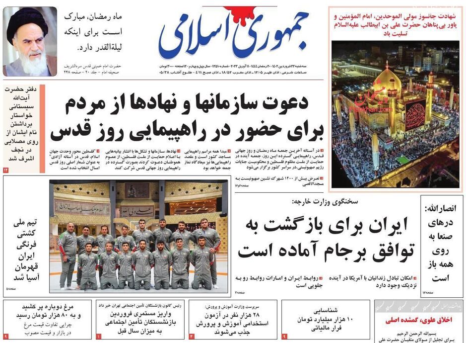 تصاویر/ پیشخوان روزنامههای پنجشنبه ۲۴ فروردین ۱۴۰۲