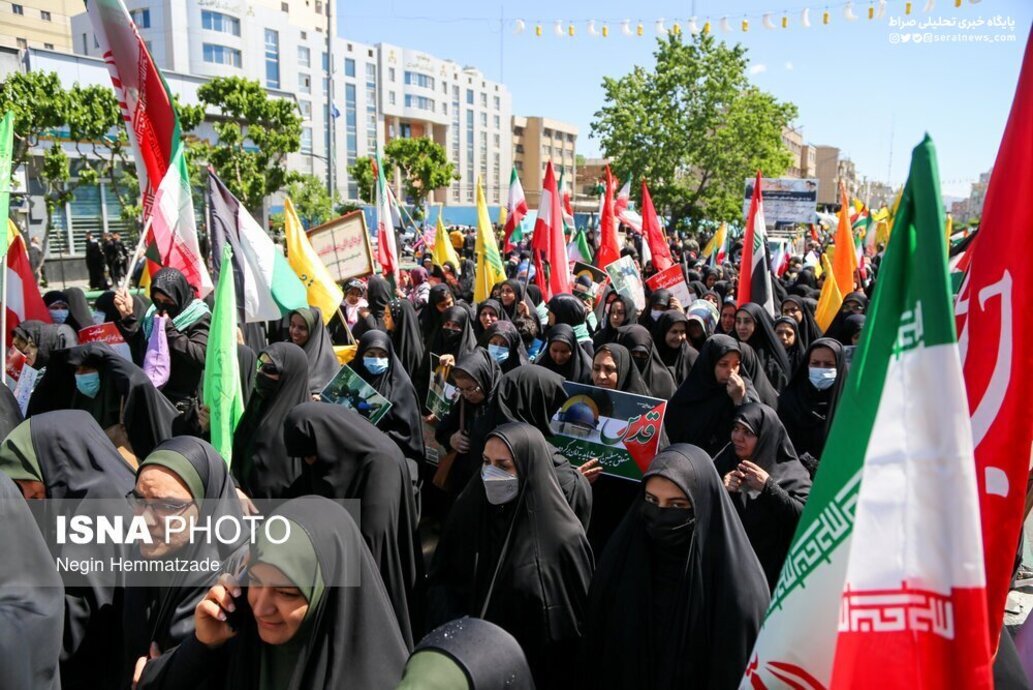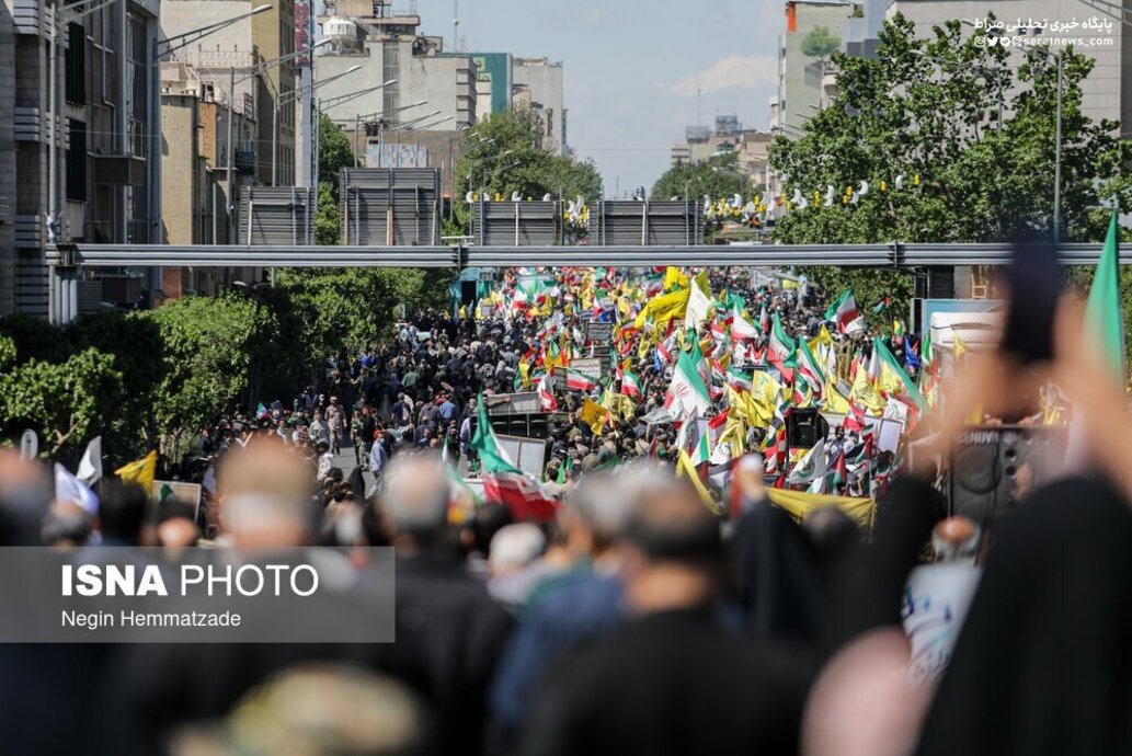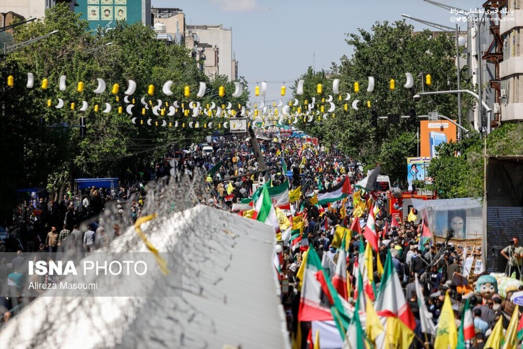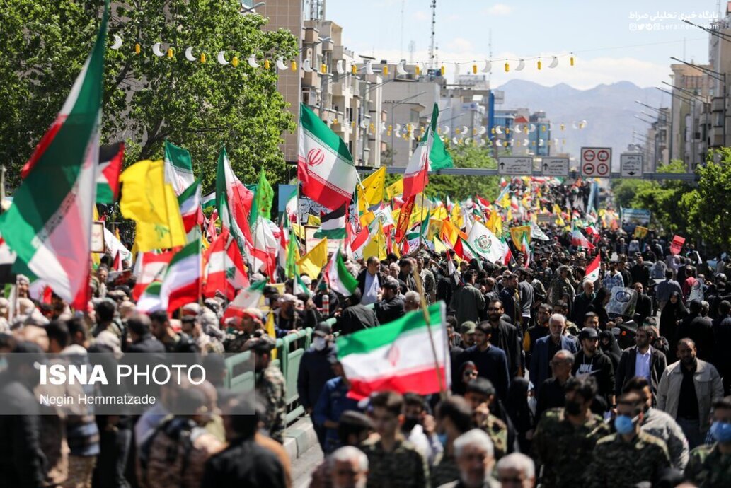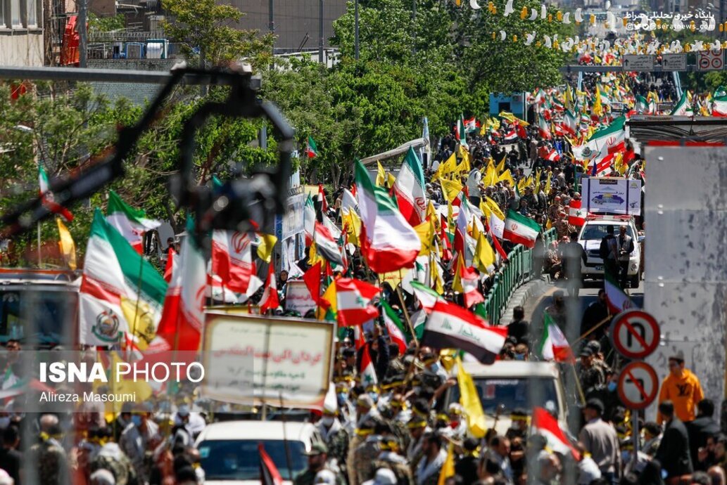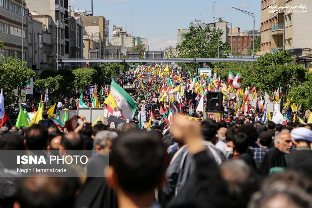 مردم روزهدارتهرانی از ساعت ۱۰ صبح امروز؛ ۲۵ فروردین ۱۴۰۲ مصادف با بیست و سوم رمضان ۱۴۴۴ از مسیرهای تعیین شده، همراه با سایر شهرهای کشور با حضور در راهپیمایی سراسری روز جهانی قدس را گرامی داشتهاند.