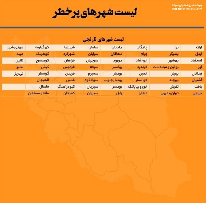 براساس اعلام وزارت بهداشت تعداد شهرهای با وضعیت قرمز از ۱۸ به ۱۲ شهر و تعداد شهرهای با وضعیت نارنجی از ۷۶ به ۶۱ شهر کاهش یافت.