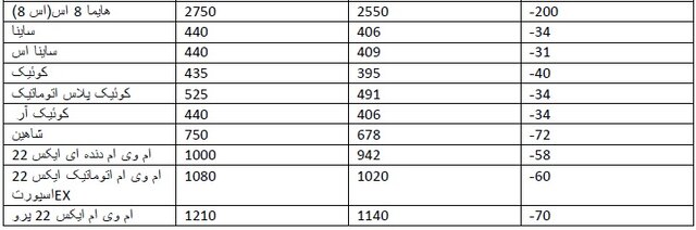 جدول: قیمت ها به میلیون تومان