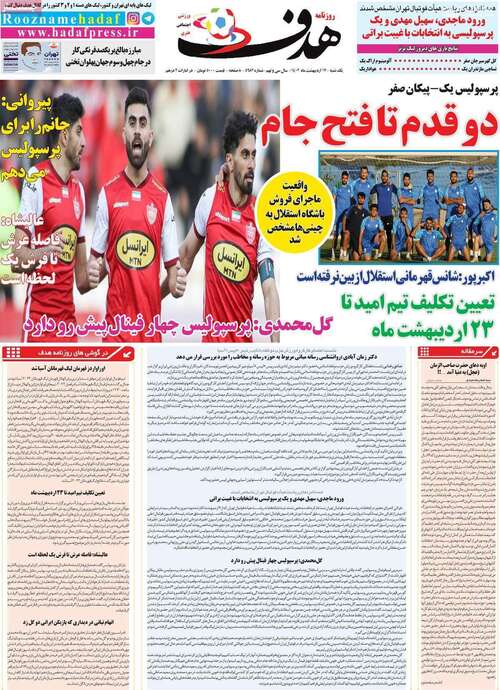 پیشخوان روزنامههای ورزشی دوشنبه ۱۸ اردیبهشت ۱۴۰۲