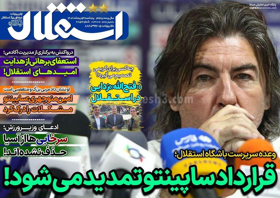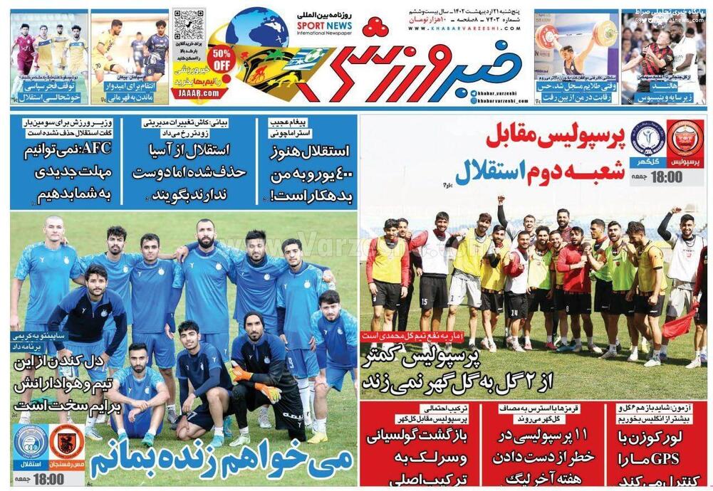 تصاویر/ پیشخوان روزنامههای ورزشی پنجشنبه ۲۱ اردیبهشت