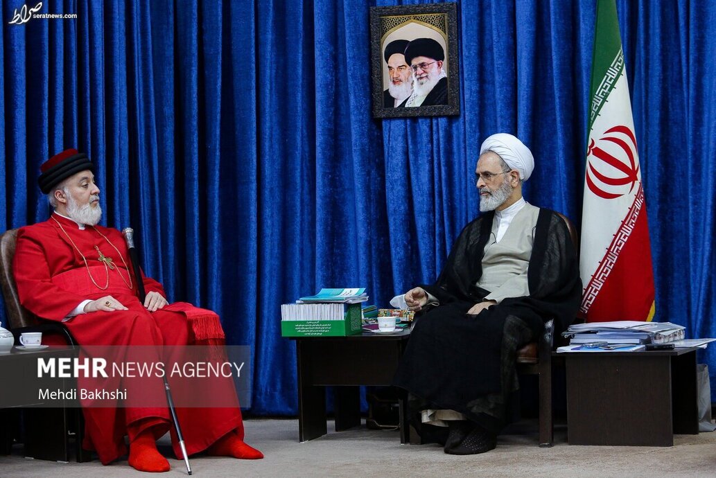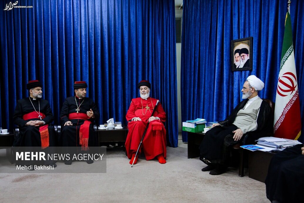 تصاویر / دیدار رهبر جهانی کلیسای شرق آشور با آیت‌الله اعرافی