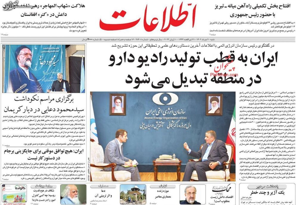 صفحه نخست روزنامهها - چهارشنبه ۲۵ تیر