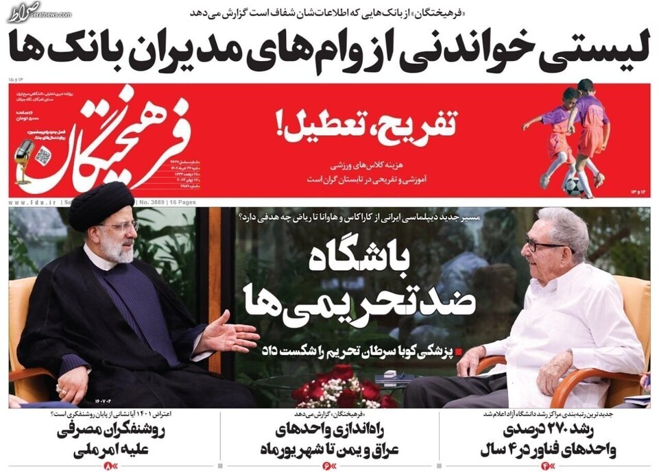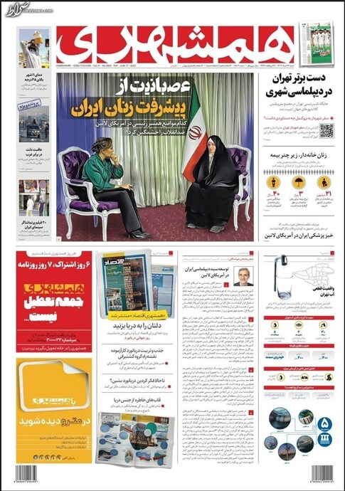 تصاویر | صفحه نخست روزنامهها - یکشنبه ۲۳ شهریور