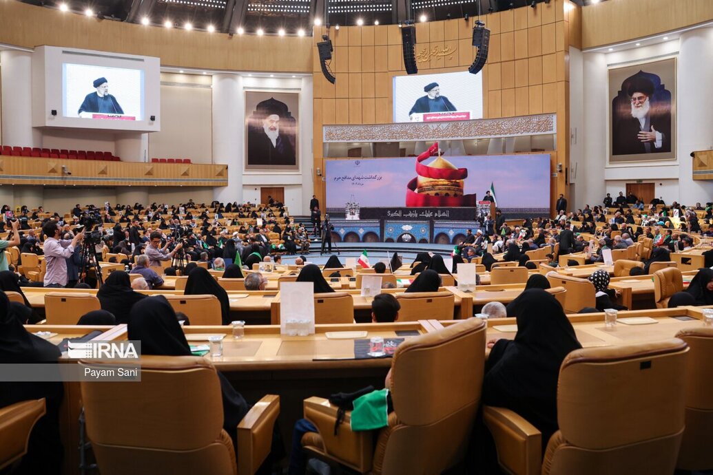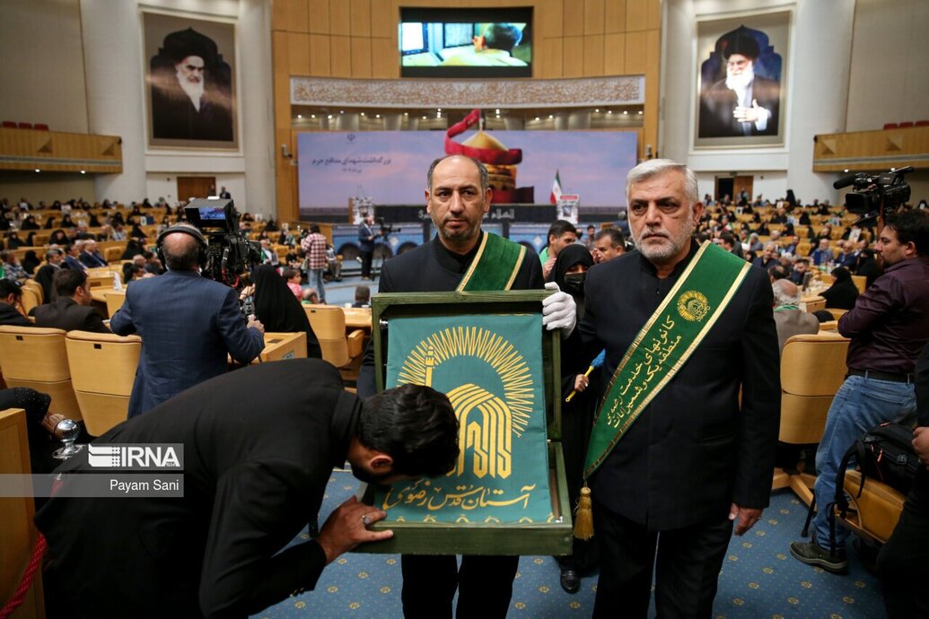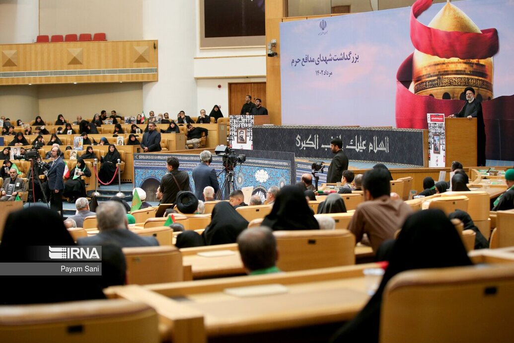 مراسم بزرگداشت شهدای مدافع حرم با حضور آیت الله «سید ابراهیم رئیسی» رئیس جمهور و جمعی از خانواده شهدا در سالن اجلاس سران برگزار شد.