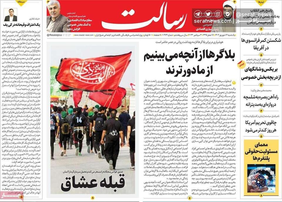 تصاویر / صفحه اول روزنامه‌های یکشنبه ۱۲ شهریور ۱۴۰۲