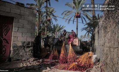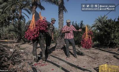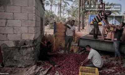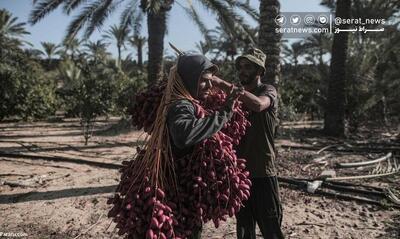 کشاورزان فلسطینی ساکن شهر خان یونس نوار غزه برداشت خرما را آغاز کردند. کشاورزان غزه خرما را با کمک طنابهایی که به پشت خود میبندند جمع آوری میکنند. تولید خرما منبع درآمد اکثریت مردم غزه است که از شرایط سخت اقتصادی و معیشتی به دلیل محاصره اسرائیل رنج میبرند.