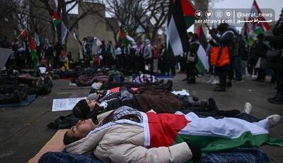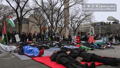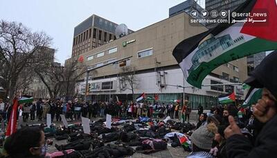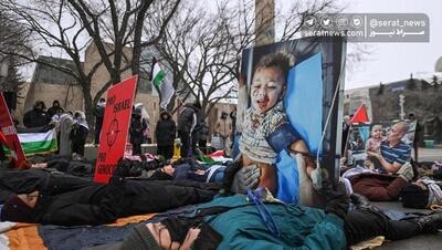 صدها شهروند در مقابل ساختمان شهرداری ادمونتون کانادا تجمع کردند و با وجود هوای منفی ۵ درجه سانتیگراد در حمایت از غزه تظاهرات مرگ برپا کردند. شرکت کنندگان در حالی که روی زمین دراز کشیده بودند، عکسهایی از کودکان قربانی حملات اسرائیل به غزه را دست داشتند. معترضان با در دست داشتن پرچم فلسطین و دستنوشتههایی خواستار پایان حملات به غزه و نسل کشی فلسطینیها شدند.