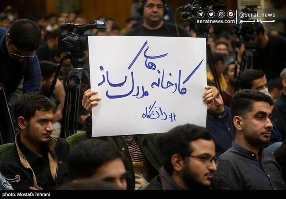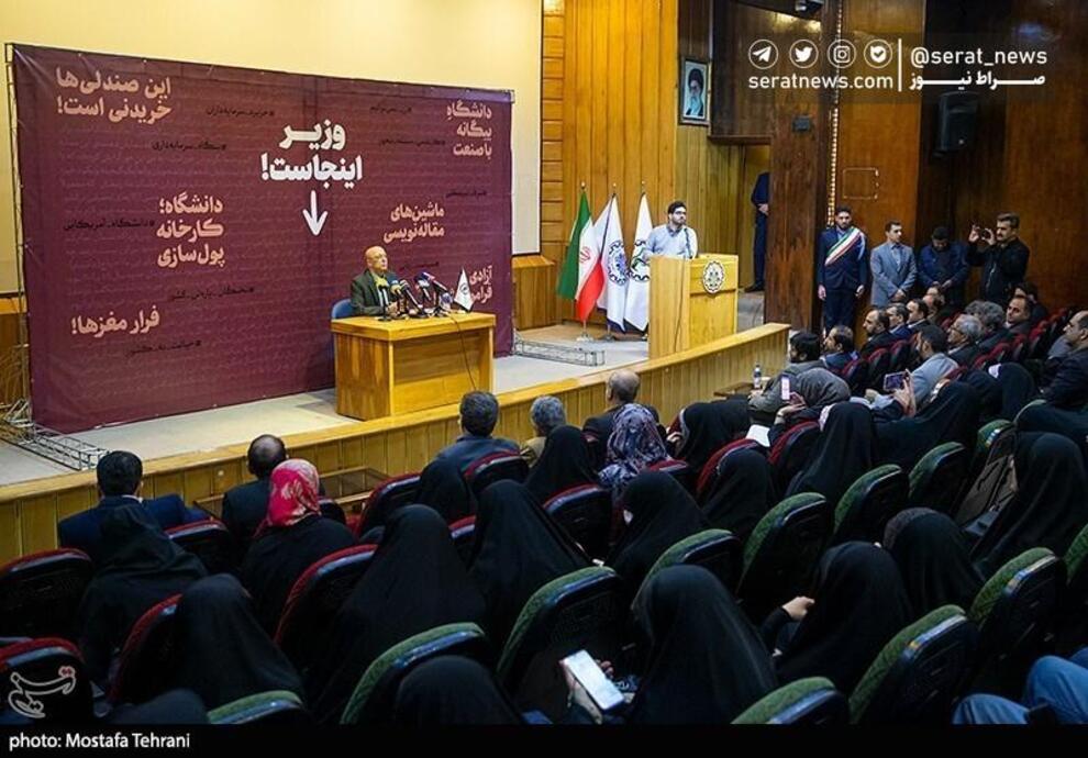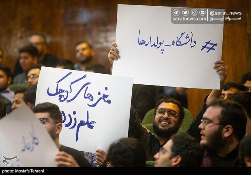 تصاویر / اعتراضهای جالب به حضور وزیر علوم در مراسم پرحاشیه روز دانشجو