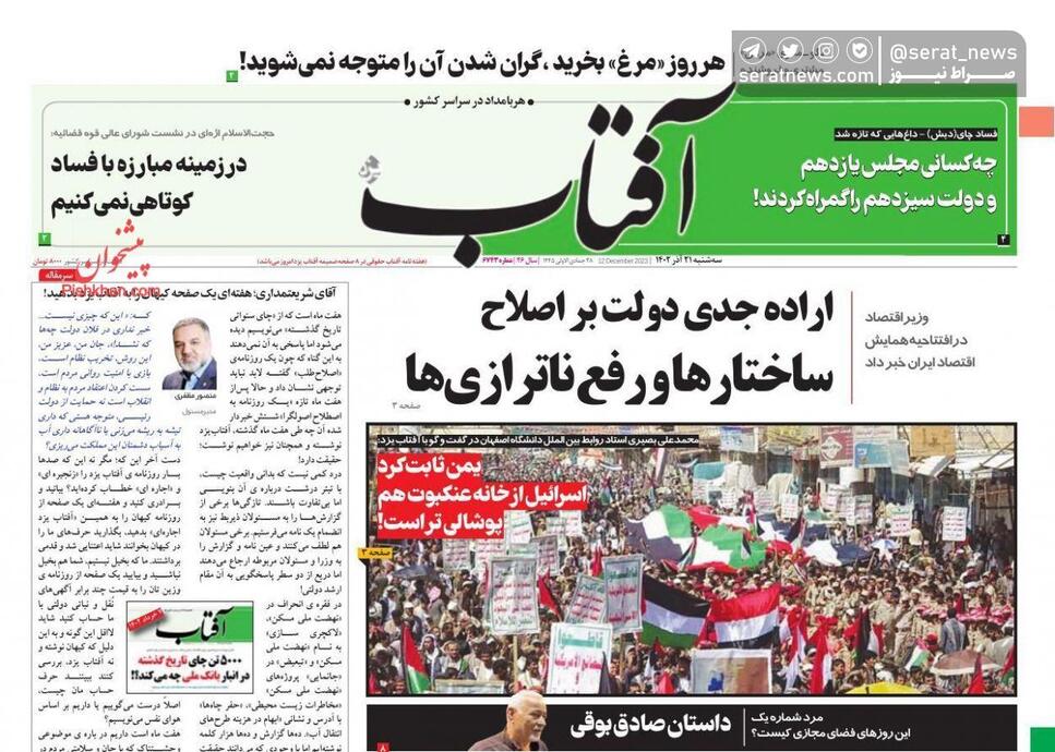 تصاویر /صفحه نخست روزنامههای پنجشنبه ۲۳ آذر ۱۴۰۲