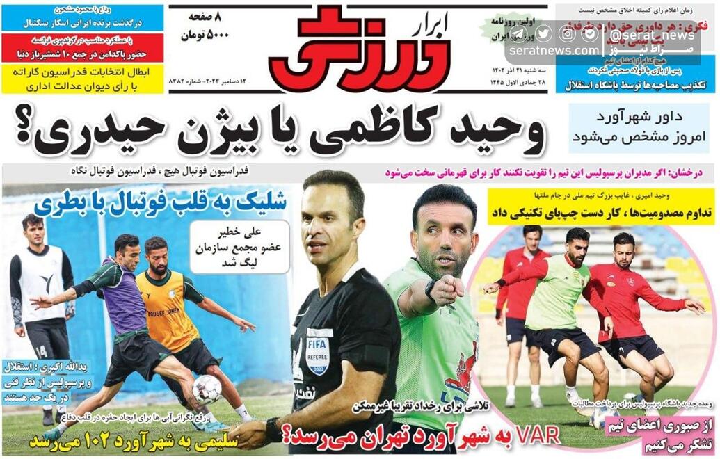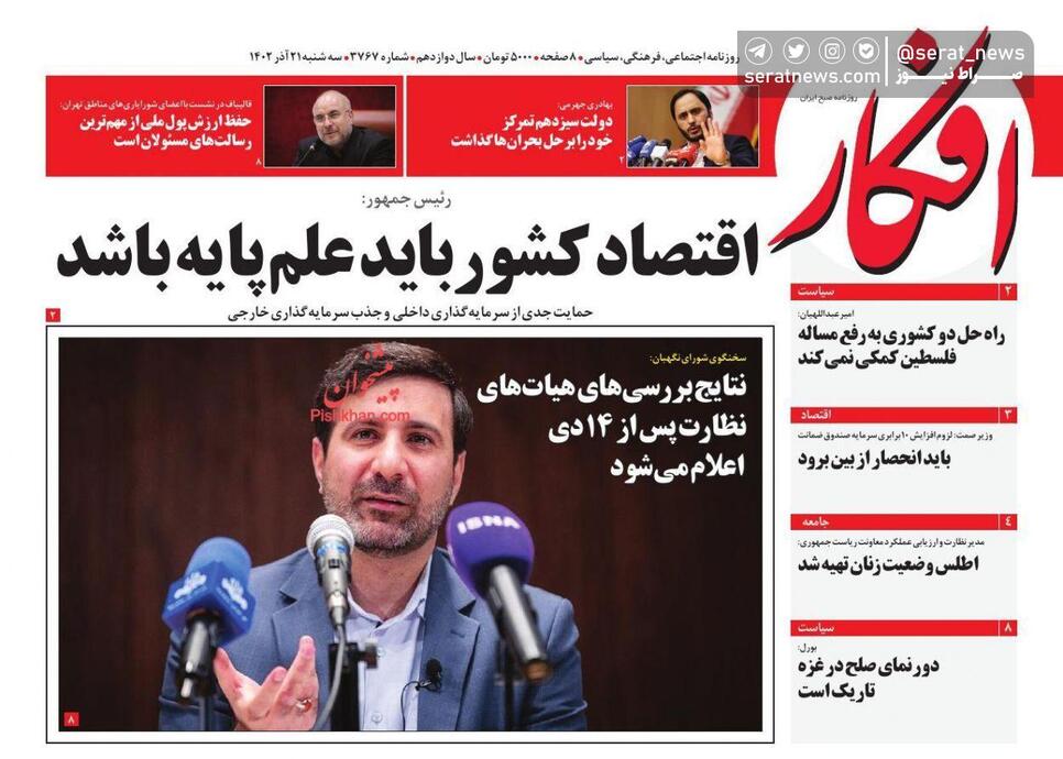 تصاویر/ صفحه نخست روزنامههای سهشنبه ۲۱ آذر ۱۴۰۲