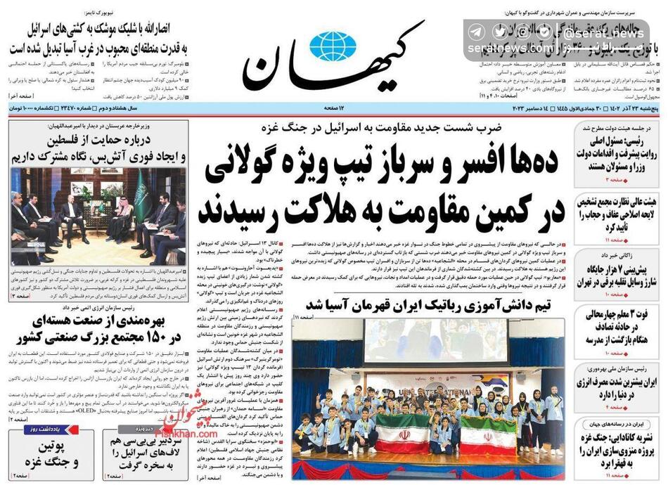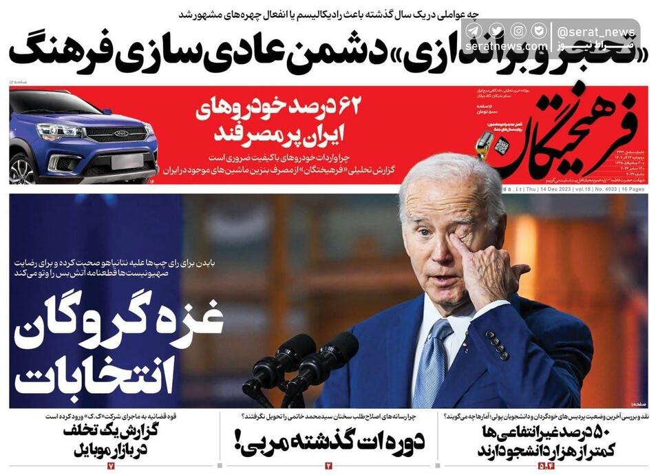 تصاویر /صفحه نخست روزنامههای پنجشنبه ۲۳ آذر ۱۴۰۲