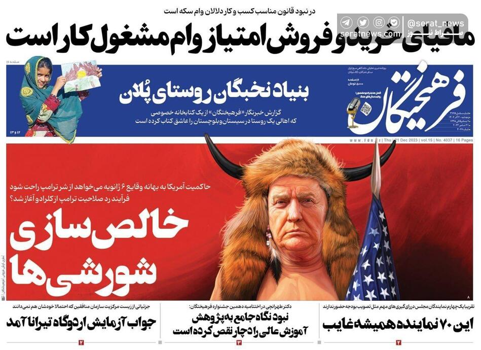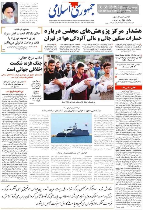 تصاویر /صفحه نخست روزنامههای پنجشنبه ۲۳ آذر ۱۴۰۲