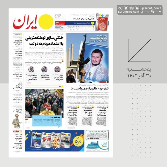 تصاویر/صفحه نخست روزنامههای پنجشنبه ۳۰ آذر ۱۴۰۲