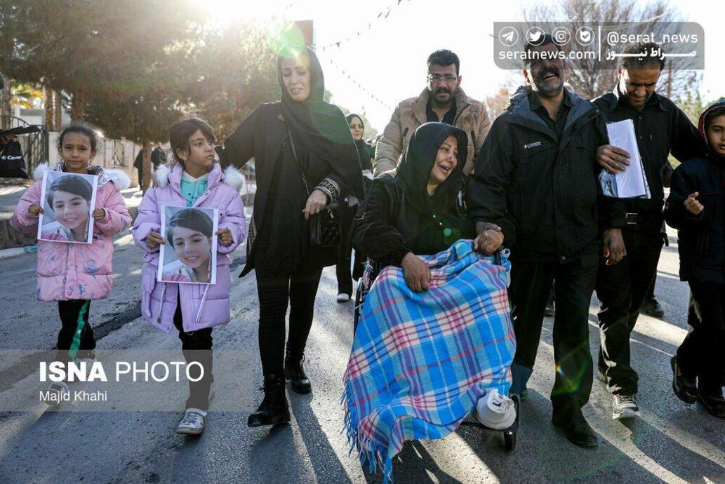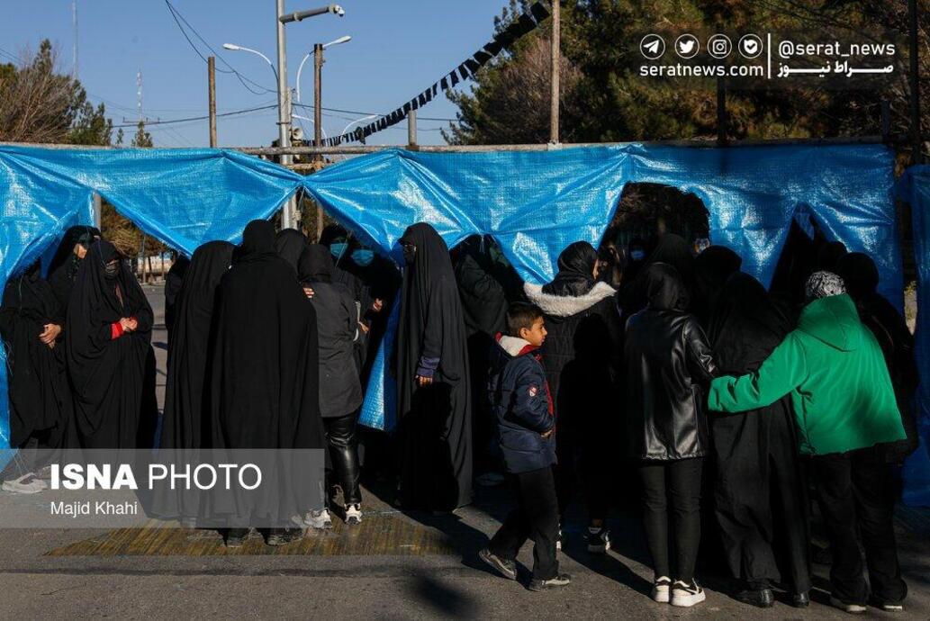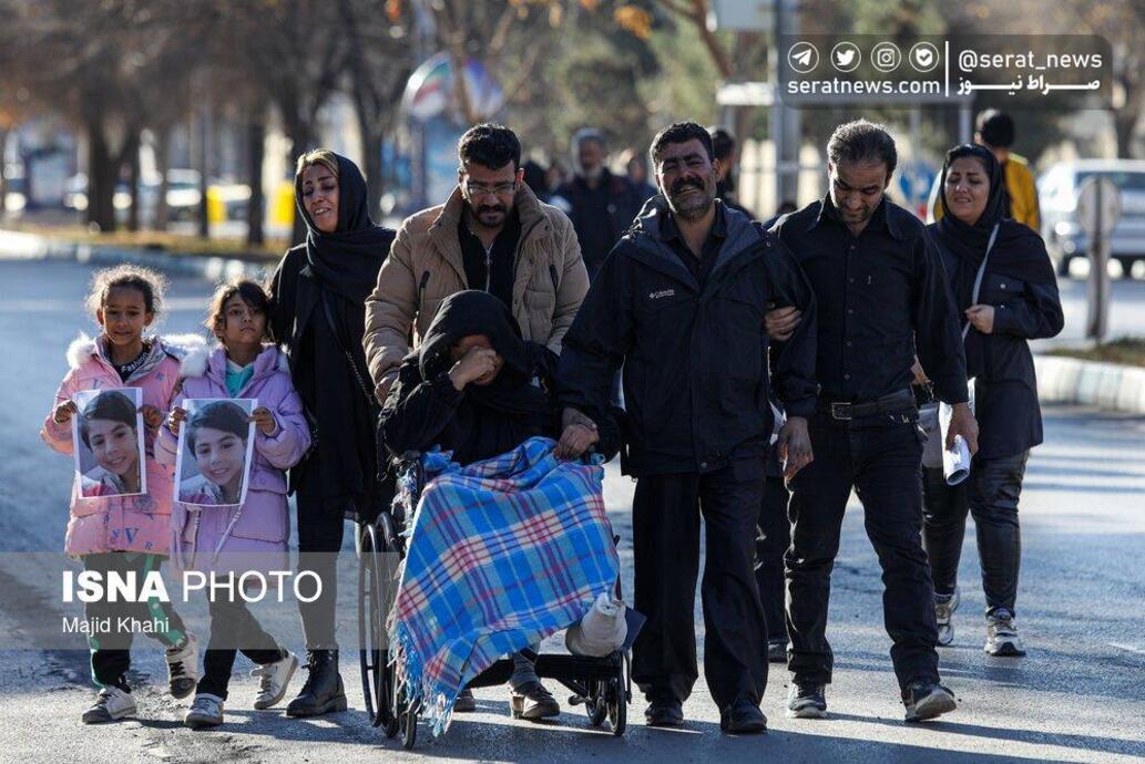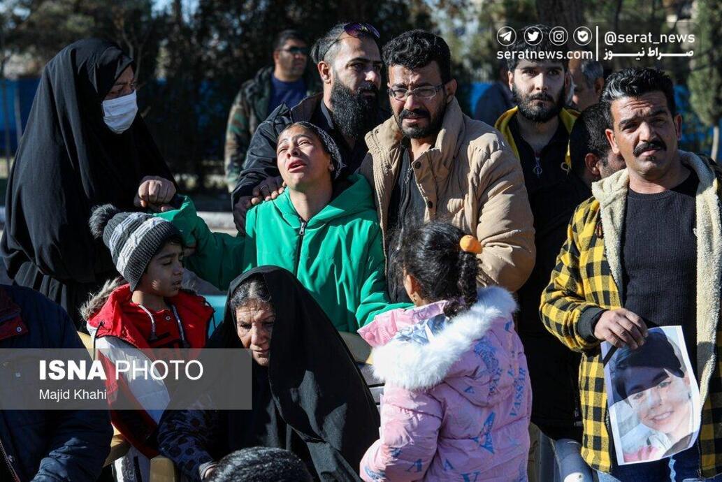 خانواده شهدای انفجار تروریستی کرمان صبح روز ۱۵ دی ۱۴۰۲ برای شرکت در مراسم تشییع شهدای این حادثه در حال ورود به مصلی کرمان هستند.