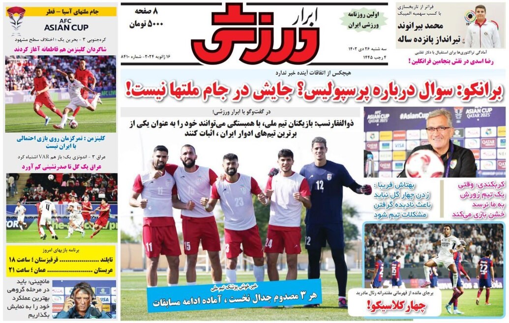 تصاویر/ صفحه نخست روزنامههای ورزشی سهشنبه ۲۶ دی ۱۴۰۲