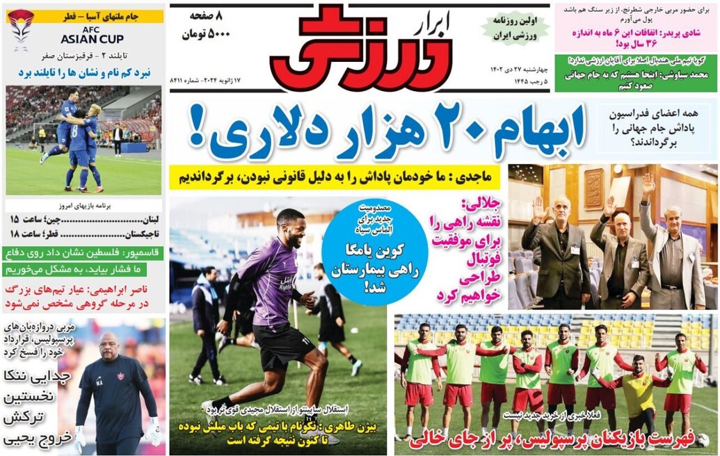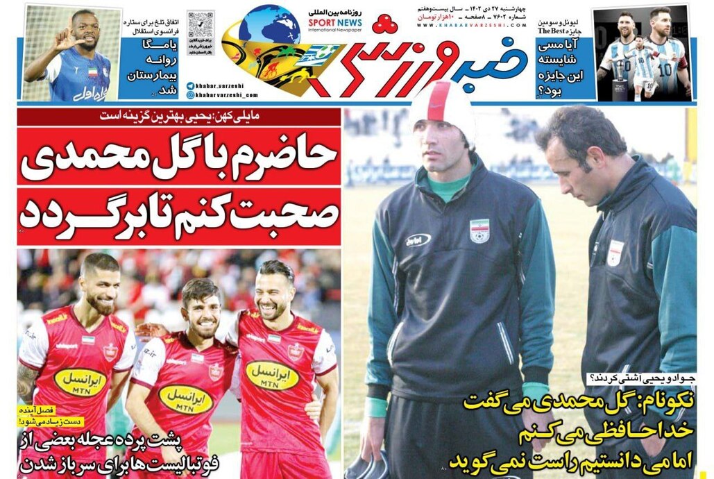 تصاویر/ صفحه نخست روزنامههای ورزشی چهارشنبه ۲۷ دی ۱۴۰۲